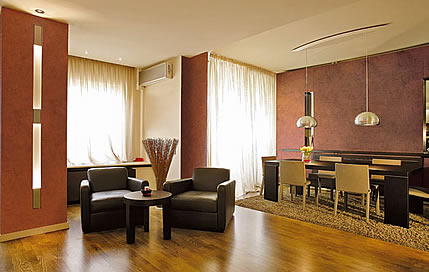 Eine mediterrane Lasur, eine Spachtel- (Stucco Veneziano / Marmorino / Stucco-Lustro), Wisch-Wickel- oder eine Tupftechnik kann im Zusammenspiel mit Zierprofilen aus Stuckimitationen ein völlig neues Wohngefühl entstehen lassen